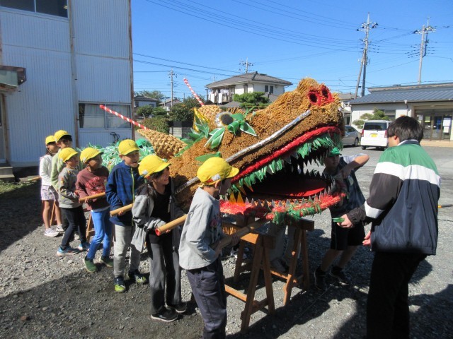 今回は、鶴ヶ島市の文化財整理室に行き、ミニ龍蛇をかつぎました。