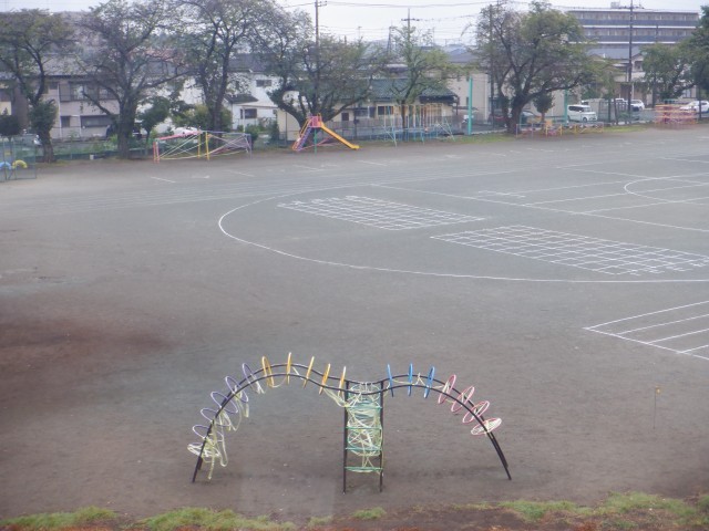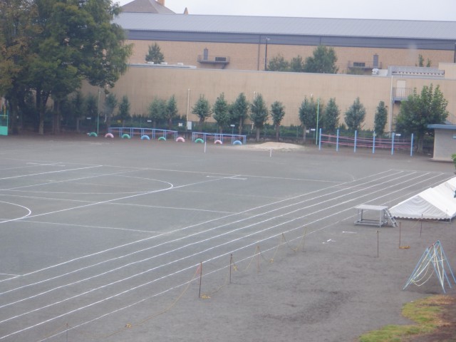その間、校庭や体育館には運動会関係のものがあります。