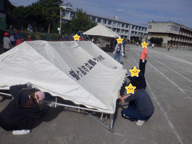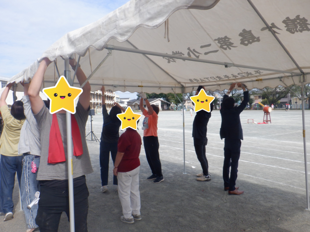前日準備では、保護者の皆さんと学校の職員が一緒になって子供たちの運動会のために汗を流しました。