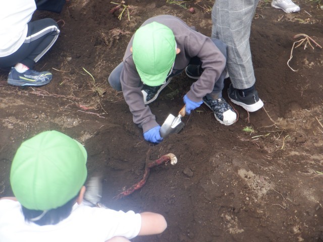 2年生がサツマイモ掘りに取り掛かりました。
