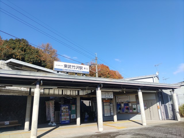 現地の東武竹沢駅もよい天気で、紅葉と青空のコントラストが目に映えます。