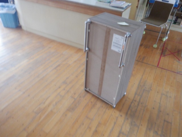 カラーボックスに車輪と取っ手になる金具を取り付けました。