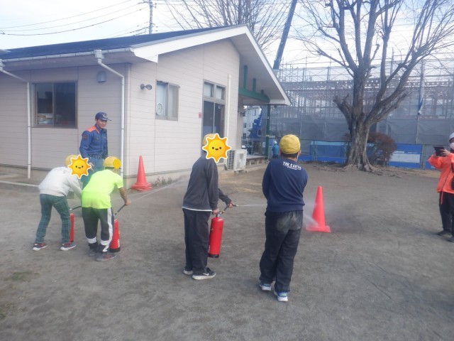 今回は鶴ヶ島消防署のご協力も得て、水消火器の操作訓練や煙中体験も実施することができました。