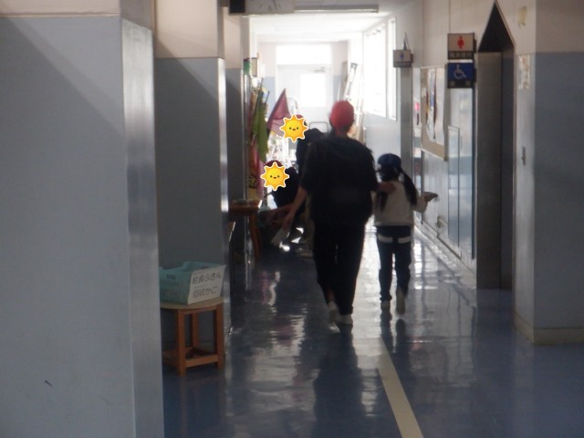 鶴二小の職員室前の廊下は、1年生と6年生が合同で清掃をしてくれています。