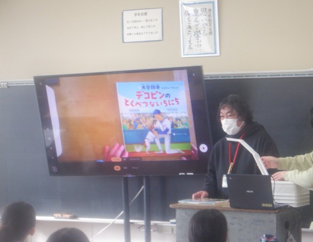 鶴二小の月曜日の朝は読み聞かせの朝です。