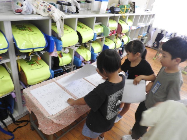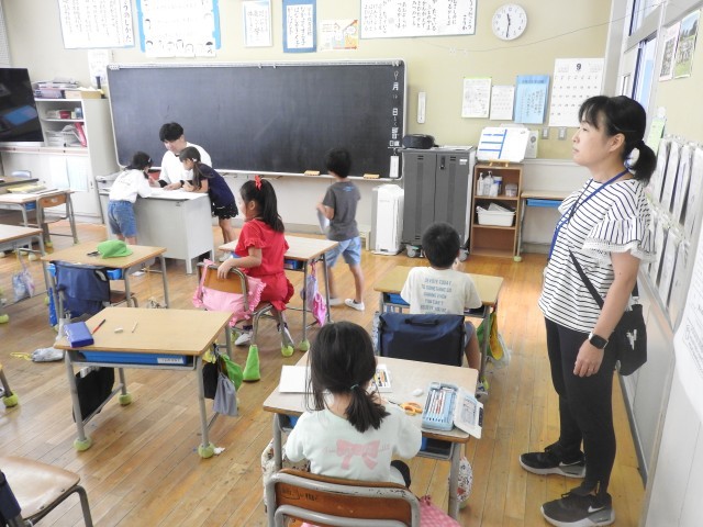 子どもの頃の「アナログ時計で時刻が読み取ることができたときの喜び」を大人になった今でも、鮮明に覚えています。 何だか、大人に近づけたようで、まだ幼い弟に、時計を指さして、「今、何時何分だよ。」と教えていました。 そのおかげで、弟は私よりも早い時期にアナログ時計から時刻を読み取れるようになりました。 そのようなエピソードを思い出しながら、1年生と学習プリントに向かいました。 「30分」と「はん」の使い分けや、「昨日のこの時刻にあなたは何をしていましたか?」という問題に、子どもたちと楽しみながら挑戦しました。