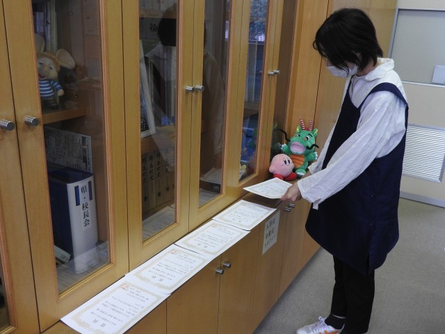 図書館の先生が、北校舎2階の会議室の廊下の「今月の本」のコーナーの本を新しくしてくださいました。 10月の本のテーマは「秋を見つけた!」だそうです。 図書館の先生が、図書委員や図書担当の先生方やミントさん(読み聞かせの学校応援団さんです。会員、募集中です。)と、読書の楽しみを広めるためのとりくみをしてくださっているおかげで、「貸し出し冊数」が増加しています。 読書表彰者も増えてきました。 読書の秋です。皆さんは、どのような本をお読みでしょうか? 私(校長)は中国の古典「貞観政要に関する本」と「考えすぎない本」を読んでいます。 同じテーマでも、作者さんによって、色々な解釈があるので、本当に楽しめます。