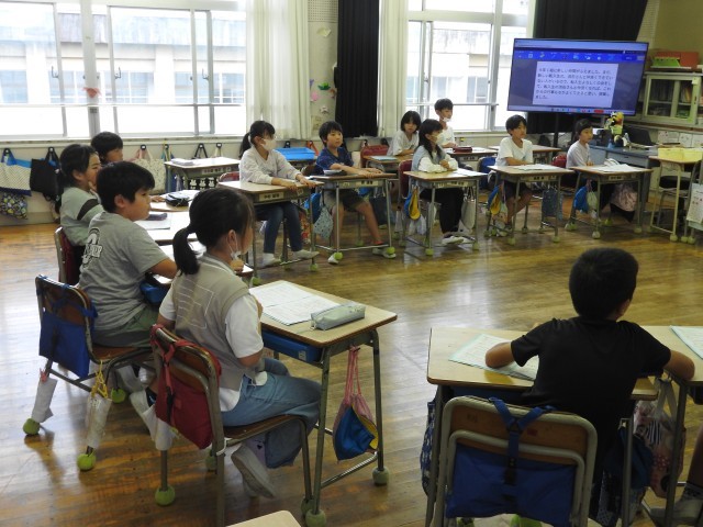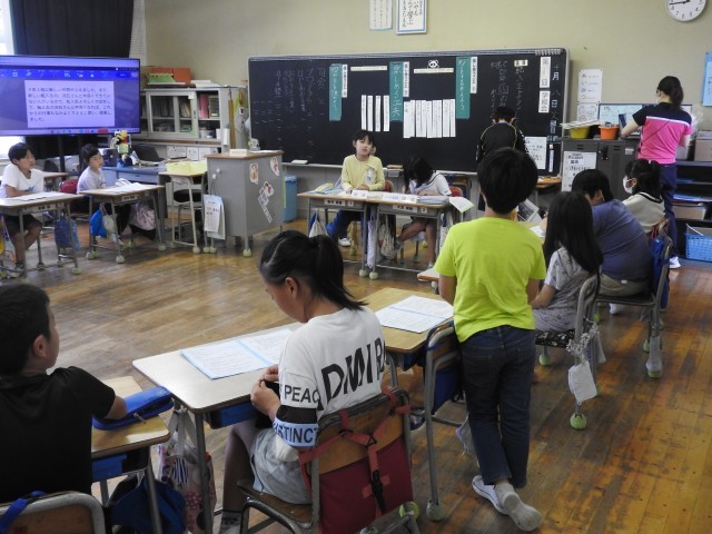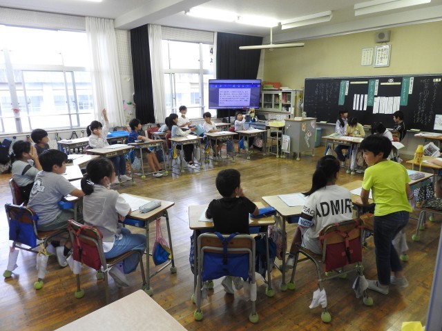 4年生の子どもたちが話し合いをしています。 司会や記録の係の子どもたちが、話し合いを上手に進めていきます。 担任の先生がニコニコ笑顔で、子どもたちに話し合いを任せ、子どもたちの傍らで温かく見守っていました。 新しい仲間を温かく迎えるためのとりくみについて、じっくり話し合う子どもたちです。