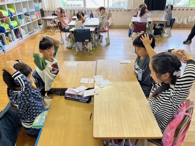 グループに分かれて机の上に分けて置いたら、言われた数字をいち早く取っていました。