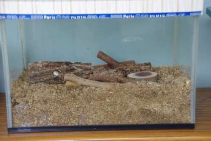 9匹の成虫が一緒では少し狭いので、引っ越しをしました。新しい昆虫マットを敷き、木を置き、昆虫ゼリーもセットしました。子どもたちに姿を見てほしかったのですが、あっという間にマットの中にもぐってしまいました。残念。