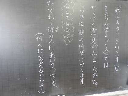 おはようございます。本日(16日)は和菓子の日だそうです。鶴茶とおいしい和菓子。すてきなコンビです。 ところで、みなさんは、「こしあん派」ですか? それとも「つぶあん派」ですか? 今日はリーダー6年生を中心に準備を進めてきた鶴二小名物「たてわり活動」がスタートします。楽しみですね。たてわり班のみんなにあいさつチャレンジのようです。何人にできるかな? あさがおの赤ちゃんのなぞの〜(ニョロニョロ?)の正体は、私も子どもたちの観察眼を借りて観察してみたいと思います。 今日もワクワクドキドキが止まりません。 すべては子どもたちのために今日も一緒にがんばりましょう。 いってらっしゃい。