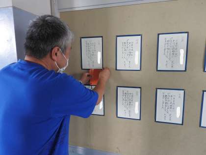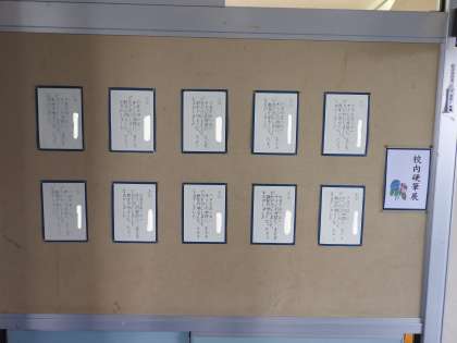 先生方からスーパー○○先生と呼ばれているスクールサポートスタッフの先生が、校内硬筆展に向けた準備をしてくださっています。 どうしたら、あのようにきれいに掲示できるのでしょうか? なぁ〜るほど! 様々な面で先生方の教育活動をサポートしてくださりありがとうございます。 スクールサポートスタッフさん、市費事務さん、学習支援員さん、学級運営補助員さん、学校図書館司書さん、算数学力向上支援員さん、校務員さん、配膳員さん……。本当にたくさんの方々が子どもたちのために、毎日一生懸命です。 大感謝です。 今後、少しずつホームページで紹介していきたいと考えています。