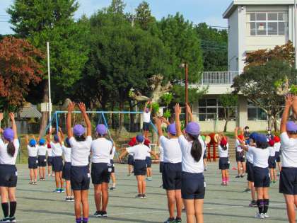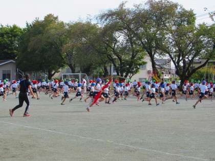 1校時に運動会の全体練習がありました。10月の生活目標「時刻と時間を守る」を意識しながら子どもたちが校庭に集まってきました。さわやかな秋空の下、校庭いっぱいに広がった子どもたちの帽子の色がとてもきれいでした。お話を聴く姿勢もとても素晴らしかったです。