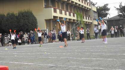 リトルリーダー2年生と1年生の表現種目です。色とりどりの軍手もそうですが、何よりも子どもたちの踊りがかわいくてすばらしかったです。