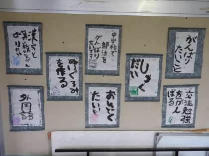 なかよし学級の廊下にて「なかよし作品展」開催中です。 子どもたちと先生方が「一生懸命」一つ一つ、ていねいに、コツコツと創り上げた作品が展示してあります。 作品を鑑賞しながら、4月から12月までの子どもたちの成長を振り返ると胸がジ〜ンとします。 今週末の授業参観・懇談会に来校した際は「なかよし作品展」(北校舎・1階・なかよし学級の廊下)をご覧ください。