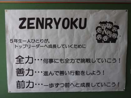 5年生の廊下の掲示物に「ZENRYOKU 全力・善力・前力」という学年目標の掲示物があります。 同じ「ぜんりょく」でも、漢字を入れ替えると色々な意味になるのですね。言葉の不思議です。 頼んだぞ! 鶴二小サブリーダー5年生!