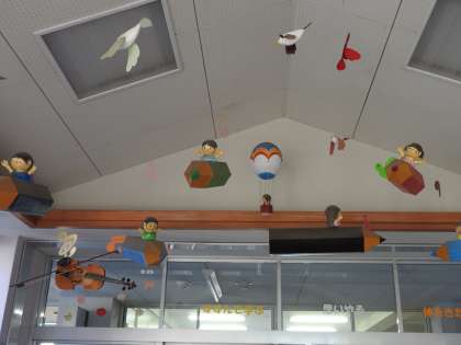 おはようございます。 今朝は雲間から太陽の光のシャワーが放射状に降り注ぐ様子を左手に眺めながら出勤しました。 自然界が織りなす色とりどりの季節感の変化を毎日観察しながら出勤できる幸福感に包まれます。 これも全て、鶴二っ子たちの鋭い観察眼から学び、気づかされたおかげです。 鶴二っ子たちに感謝しています。 草木が繁茂していくように、子どもたちや先生方の掲示物が、歴史ある校舎の壁面を彩っていきます。 今日も「すべては子どもたちのために」を合言葉に一緒にがんばりましょう! 職員玄関や児童昇降口にある先輩の先生が作成してくださったオブジェです。 とってもすてきで、心が癒されます。