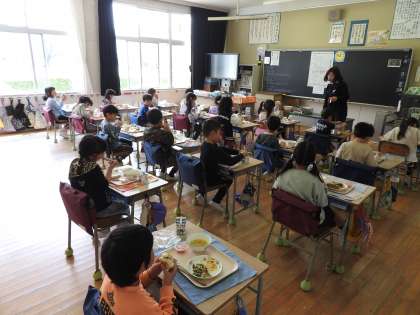 みなさんは、ご自身の小学生時代の「初めての給食」を覚えていますか? 私は当時の給食の献立メニューは記憶にありませんが、大きな食パン2枚とマーガリン、三角パックの牛乳が今でも記憶に残っています。 1年生の保護者の皆さん、お子さんに「初めての給食」の感想を聞いてみてください。 心配になって1年生の教室をのぞきにいきましたが、先生の温かい支援のもと、子どもたちはおいしそうに給食を食べていました。