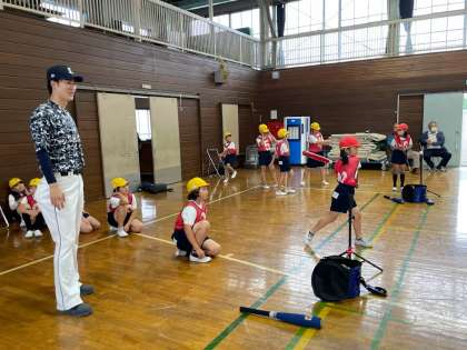 元プロ選手のバッティングに「お〜」と沸く子ども達。