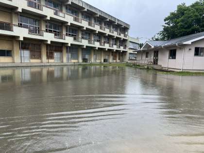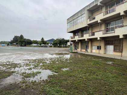 午後3時、市役所への出張から戻ると、ぐりどん広場(南校舎と学童さんの建物の間の広場をそう呼ぶそうです。)の水がひいていました。 雨の中、校務員さんと学校応援団さんが、対応してくださったからです。 鶴ニ小はたくさんの方々から愛され、守られています。 本当にありがとうございます。