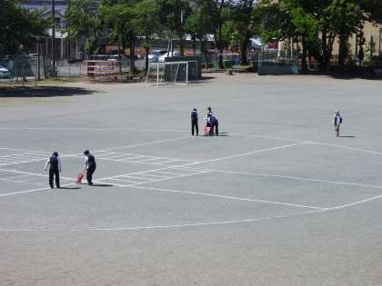 「自分の命は自分で守る」という合言葉のもと、子どもたちにとって「たった一つしかない尊い命」を守るためのすばらしい経験となりますように、と青空を見上げて思いました。 しばらくすると、交通安全指導員さんと市役所の方々が集合し、先生方が描いたラインに本日のプログラムのラインを付け足してくださっていました。 どうぞ、よろしくお願いします。