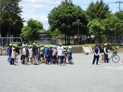 5年生と6年生の交通安全教室のスタート時に「校長の悲しい記憶」についての話をしました。 私がまだ若い先生だった頃、卒業式の日の朝に交通事故で大切な命を失ってしまった生徒のお話をしました。とっても優しい子で、今でも目を閉じるとその子の笑顔が心に浮かびます。 校長が調べたところ、昨年度、自転車に乗っていて交通事故にあってしまった人で、ヘルメットをかぶっていた人とかぶっていなかった人では、かぶっていなかった人の方がかぶっていた人よりも3倍の方々がお亡くなりになったそうです。 しかも、過去5年間に起きた約2000件の自転車の事故のうち、半分の約1000件が頭のケガで、お亡くなりになった方が多いそうです。 たった一つしかない尊い命を、今日ご指導いただいたことを確実に守りながら、自分の命は自分で守りましょう。 高学年ブロックの子どもたちには、「高齢者に道を譲る」というご指導もいただきました。ぜひ、実践してほしいです。