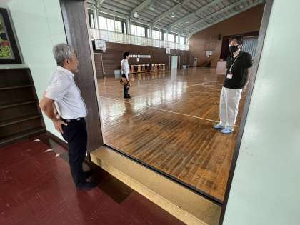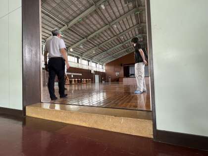 私が鶴ニ小の校長先生になる前から、鶴ニ小の先生方はユニバーサル・デザインについて研究をしてきたそうです。 いったい、ユニバーサル・デザインって何でしょうか? 調べて自主学習ノートにまとめてみましょう。 今日は市役所の方々と教務主任の先生が、体育館の入り口について打ち合わせをしていました。 子どもたちのためにありがとうございます。