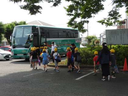 1日学校をあけると校長室の机の上にたくさんの「伝言」や「文書」が山積みになっています。一つ一つ大切に対応していると、校長室の窓の下から子どもたちの楽しそうな声が聞こえてきました。「低学年ブロックの子どもたちが民間施設水泳学習に出かける時間だ!」 校長室の窓を開けて「いってらっしゃい!」と声をかけると、大急ぎで(もちろん、廊下では走りません。)で正門へ移動しました。 「校長先生。分身の術を使いましたね。行ってきます!」 子どもたちと先生方がバスに乗り込みました。 子どもたちの笑顔を見れば、この先進的な事業がいかに教育効果が高いかは一目瞭然です。 教務主任の先生と体育主任の先生がこの取組の中心となって、子どもたちのために尽力してくださっています。 子どもたちのバスの後を追って、教務主任の先生も学校を出発しました。