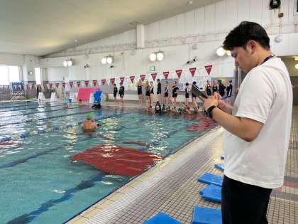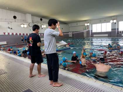 民間水泳学習では、主にコナミスポーツのコーチが指導してくれます。