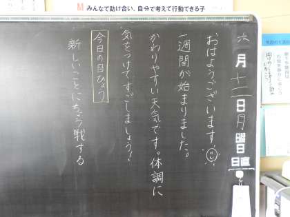 おはようございます。 月曜日の朝の校舎内は空気がよどんでいるように感じます。校舎の中を歩きながら、かつて子どもたちと一緒に暗唱した「行く川の流れは絶えずして……」と方丈記(鴨長明)の冒頭を口ずさみ、窓を開けて空気を入れ替えます。 子どもたちや先生方が育てている植物の成長が盛んです。 休日も先生方や学校応援団さん、地域の方々が世話をしてくださっているようで、環境整備が進んでいます。 本当にありがとうございます。 今朝もミントさんに読み聞かせでお世話になります。 どのような本を読んでいただけるのか、子どもたちはワクワクしながら登校します。 当たり前ではない「優しさのバトン」を感謝しながら温め続けていきます。 今日も「すべては子どもたちのために」一緒にがんばりましょう!