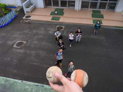 先週の金曜日、帰宅準備をしながら、校庭で遊ぶ子どもたちを眺めていると、子どもたちが私に気づき、何やらボディーランゲージで南校舎の昇降口の屋根の上を指さしていました。 校長室の窓をあけ「どうしたの?」と聞くと、ボールが屋根の上に上がってしまったとのこと。 「分かった。取ってあげるから、少し待っていてね。」 屋根に上ると、いくつかのボールがあがっていたので、子どもたちに 「あなたが屋根にあげてしまったボールは、 金色のボール? それとも銀色のボール?」と言うと、「校長先生。どちらも違います。オレンジ色のボールです。早く遊びたいから、早く返してください。」と言われました。 かたわらで見守る保護者の方々も笑ってくださっていました。