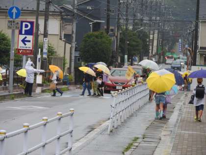 今朝も雨の中の登校見守りありがとうございます。 鶴二小では、スクールガード(学校応援団)を募集しています。 興味・関心のある方は、鶴二小までご連絡ください。(285−1878)