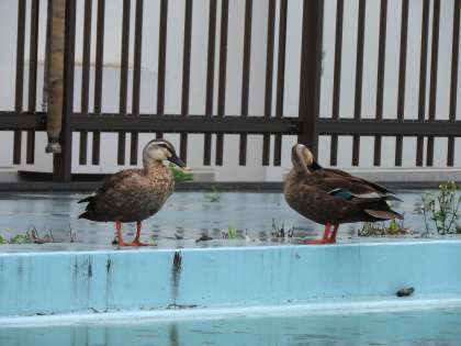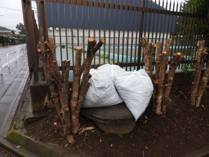 地域の方々から、「ヤオコーさんとプールの間のT字路の見通しがとてもよくなった。」とお礼を言われました。 今朝、プールわきに3つの大きなゴミ袋を発見しました。土日に学校応援団さんが葉や枝を細かく切って、つめてくださったようです。 プールではカモの夫婦が仲良く毛づくろいをしていました。 子どもたちのためにありがとうございます。