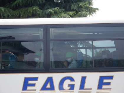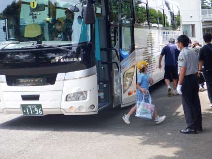 大型のバスを手配していただき、出入りの都度、往来の皆様に一時停止などご協力をいただいています。