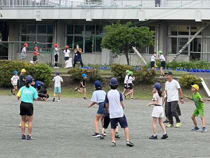 行間休み、子どもたちと先生方が校庭で元気に遊びます。環境整備の手をとめて、楽しそうに遊ぶ様子を見守っていると、仲良し学級の子どもたちと先生と教務主任の先生が近づいてきました。「校長先生。お疲れ様です。水分補給を。」 よく冷えたお茶でのどを潤しました。 ごちさうさまです。 安心、安全な鶴ニ小めざして、校務員さんと学校応援団さんとがんばりました。