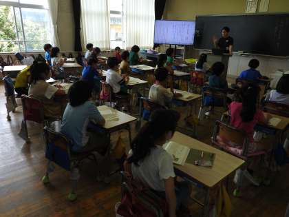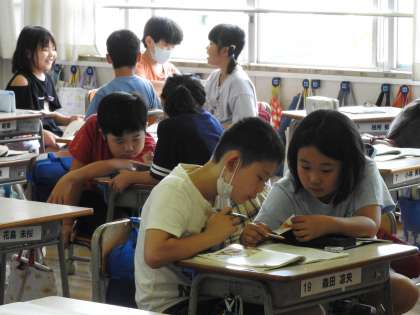 3年生の教室はどちらも「国語」の授業をしています。 「先生が文章にはどのような分け方がありますか?」と子どもたちに聞くと「段落と場面です。」という答えが返ってきました。 中学校の国語の先生をしていたときに同じような授業をしたことを思い出しました。 今回は、物語なので場面で分けていくようです。 単語・文節・文・文章・形式段落・意味段落……などなど、中学生になると「言葉の単位」についても学習します。 子どもたちが先生の支援のもと、教科書を使って、場面に分けていました。 いつみても「一生懸命はかっこいい」ですね。