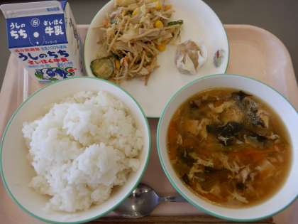 今日も地元鶴ヶ島産のにんじん、玉ねぎ、キュウリが献立に使われています。