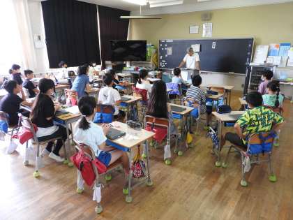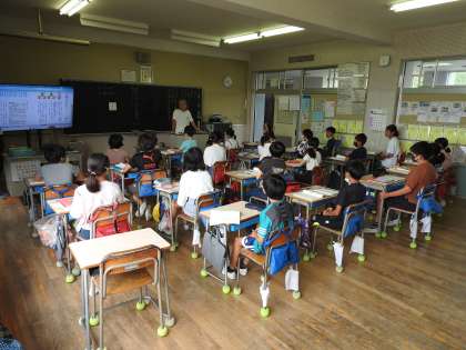 始業式と入学式のときに、校長先生から鶴二っ子たちにお願いしたいくつかのミッションを、鶴二っ子たちは毎日確実に守ってくれています。 先生やお友達のお話を最後までしっかり聞くこと。 大人になって社会に出てからも大切なことの一つですね。 「おへそ」がお話しする人の方にしっかりと向いています。