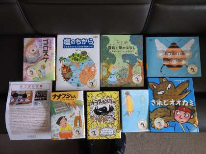 図書担当の先生と図書室の先生が、子どもたちのために応募した山田養蜂所さんからの「ミツバチ文庫の本」が届きました。 ミツバチの巣を見るたびに、あのビシーッとそろった6角形の形に自然界の神秘を感じます。 子どもたちと先生方と大切に読ませていただきます。 ありがとうございます。 早速、図書委員の子どもたちにお願いして、「ミツバチの本」を借りたいと思います。