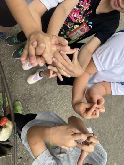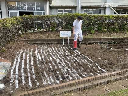 学級運営補助員の先生が、ラインカーを使って、花壇のすぎな対策をしていました。その手がありましたか。休み時間になったので、仮払い機を止めて、木の切り株に腰をかけていると、子どもたちが寄ってきて、手で色々な動物を作ってみせてくれました。ジャガイモ掘りでお世話になったレジェンド先生が、ベーゴマを子どもたちのために持って来てくださいました。 錆びを落として、ヒモも準備してくださいました。 毎日が新しい発見の連続で楽しいです。ありがとうございました。