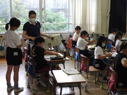 墨汁の良い香りが廊下に漂ってきます。 3年生の子どもたちが「書写」の授業で「土」という字を毛筆で書いていました。 現代の先生方は、子どもたちに道具の使い方や片付け方法までしっかり教えてくださるので、私が子どもの頃のように、墨で手や服を汚してしまう子どもが少ないように感じます。 黒板に掲示された子どもたちの作品が子どもたち一人一人の笑顔のように感じました。 一生懸命ってかっこいいですね。