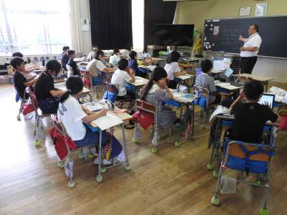 小学校の教頭先生も授業をします。先生方の法律の「学校教育法」にもそのことが記されています。 教頭先生の授業もとても楽しく、今日は「情報収集・色々な調べ方」について、説明し、子どもたちに実践させていました。 子どもたちの小さな声のつぶやきに気づくと「その方法も正しいよ。挑戦してごらん。」と温かい言葉をかけていました。 教頭先生もすごいです。 新しい教頭先生も知識が豊富(物知り)です。 分からないことがあったら、じゃんじゃん質問してみましょう。