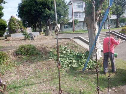 毎朝、校庭の環境整備をしてくださっている応援団さん。
