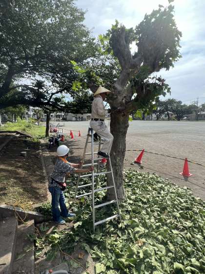 鶴ニ小のホームページを見た学校応援団さんが集まってきてくださいました。子どもたちの安全を考えて、腐ったウロの部分を切り落とすことにしました。8時から始めて、午前中いっぱいかかりました。本日も子どもたちの安全のためにありがとうございました。