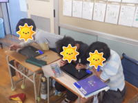 感染症対策として、体育館に行く学年と、教室からオンラインで参加する学年に分かれて行いました。