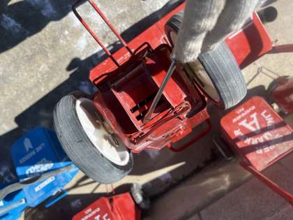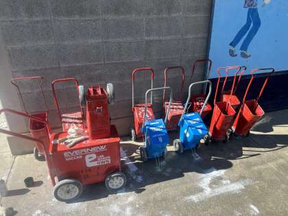体育主任の先生とラインカーの定期メンテナンスをしました。中のゴミを取り除き、車軸にグリスをぬり、水にぬらしてかたくしぼったぞうきんでまわりをきれいにふきました。 物を大切に使い続けることも働き方改革につながります。