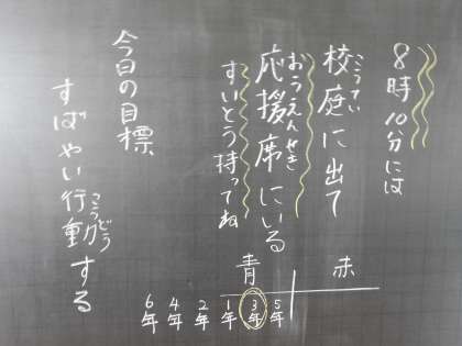 おはようございます! 三連休はいかがお過ごしでしたか? 7日(土)は地元鴻巣市で花火大会が行われました。4尺玉は鶴ヶ島市から見えたでしょうか? 当日、懐かしい方々と再会し花火を見ながら、互いの近況報告をしました。 いよいよ今週末は運動会です。連休中も先生方、学校応援団さんや地域の方々が鶴二小の環境美化活動に尽力してくださったようで、今週時間を作って、草取りをしようと考えていた場所がとてもきれいになっていました。 ありがとうございました。 鶴二小は今後も地域と共にある学校を創造していきます。 運動会当日、皆さんと一生懸命頑張る子どもたちを全力応援して、「子どもたちの成長の感動」を共有させていただきたいと考えております。 今日も「すべては子どもたちのために」一緒にがんばりましょう!