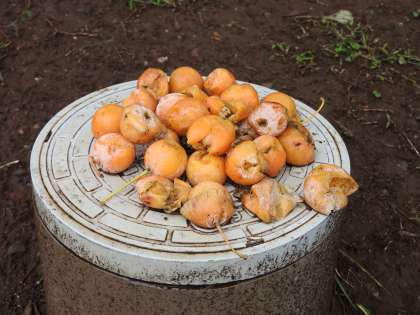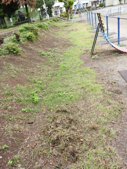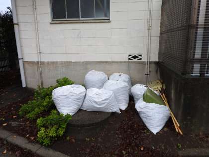 校長が刈り取った草を集めて乾燥させ、袋に入れていきます。 学校応援団さん、地域の皆さんに感謝しています。 イチョウの実が今年も豊作です。
