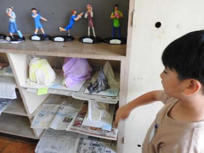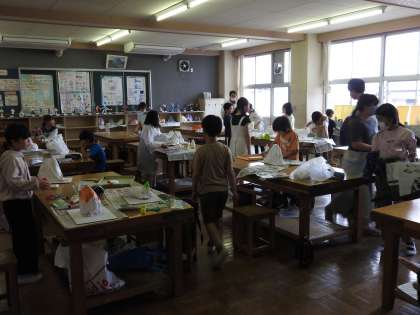 図工室で4年生が「何か」を作っています。 私が入り口から見ていることに気が付いた女の子が、さっと寄ってきて「校長先生。私は富士山を作りました。」「ああ。本当だ。富士山が棚の中にありますね。右側と左側のバランスが難しかったでしょう?」 子どもたちが自分の作品について色々と説明してくれます。完成させた子どもたちは、すきま時間を上手に使っていました。子どもたちが一生懸命集中しているときのキラキラした目の輝きを見るのがとても好きです。 「芸術は爆発だ!」 岡本太郎先生の言葉です。