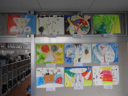 「夢」や「想像」や「空想」を抱(いだ)く行動は、人間がもって生まれた才能なのかもしれません。 「こうなりたい。」「こうありたい。」「こうであってほしい。」の「こう」の部分に入るワードは十人十色です。 子どもたちの「こう」は? 楽しく一枚一枚、鑑賞させていただきました。